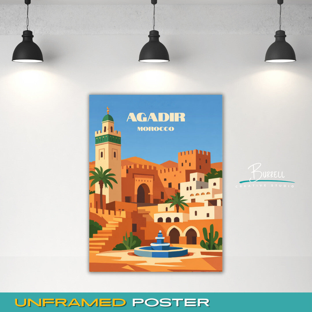 Agadir Morocco City Scenery Travel Poster & Wall Art Poster Print