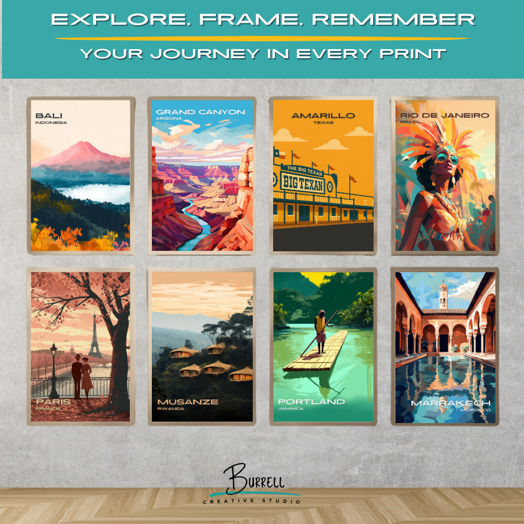 Vibrant neon signs, rustic architecture, and a hearty sense of hospitality make this landmark a must-see—and now, a must-hang. Whether you’ve tackled the steak or just admired the scene, this artwork serves up a hearty slice of Americana for your wall.