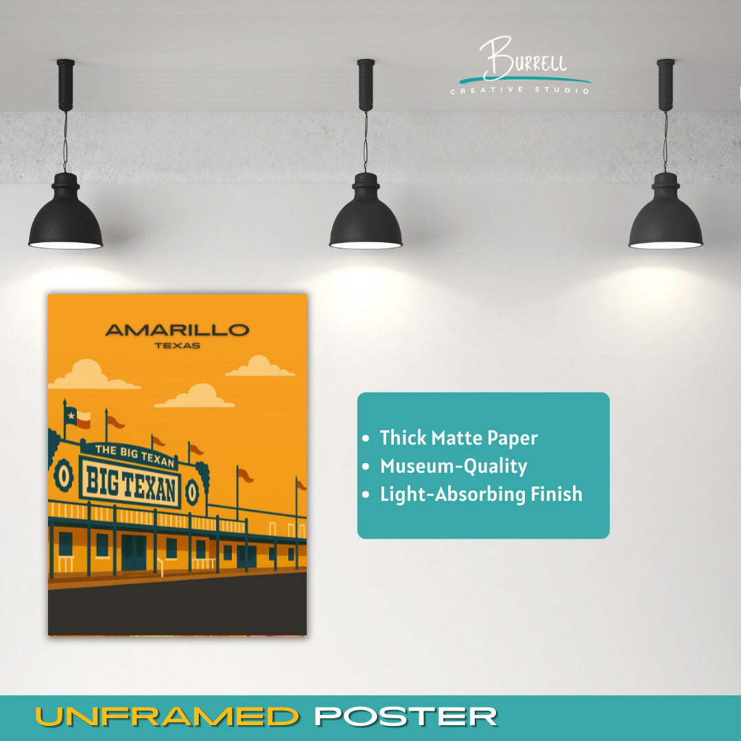 Amarillo Texas Big Texan Steak House Travel Poster & Wall Art Poster Print
