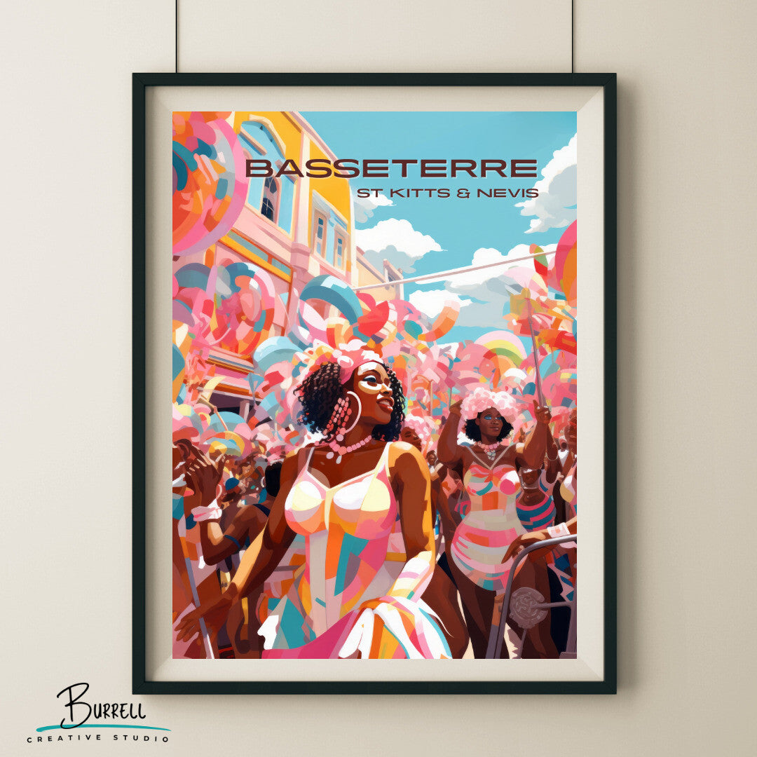 Elevate your decor with the lively hues and cultural dynamism of Basseterre Carnival, and let the festivities adorn your walls with a burst of Caribbean joy.