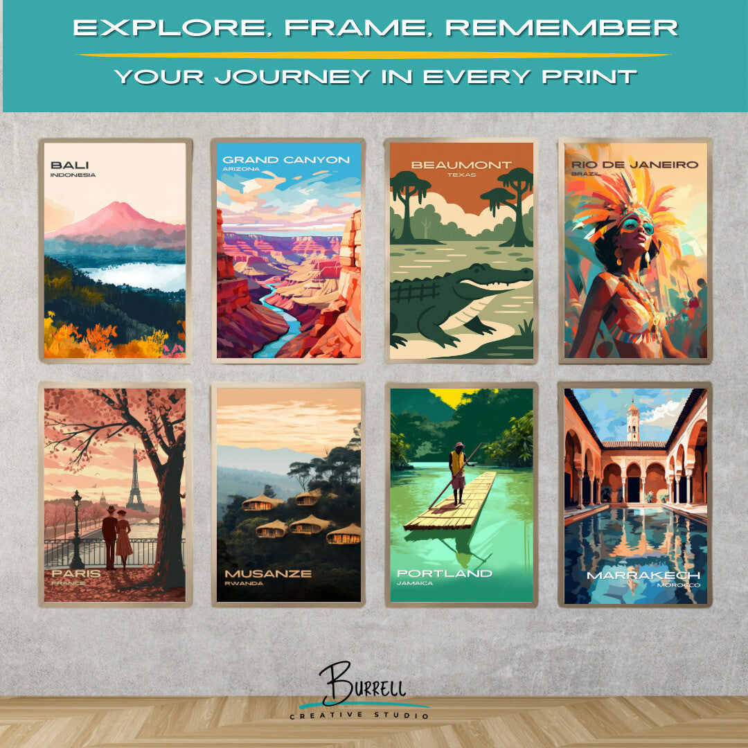 Dare to bring the untamed spirit of Southeast Texas into your home with this striking Beaumont Gator Country wall art poster. Featuring the raw power and primal beauty of the American alligator, this piece pays tribute to one of Texas’s most unforgettable roadside attractions—where adventure meets swamp life head-on.