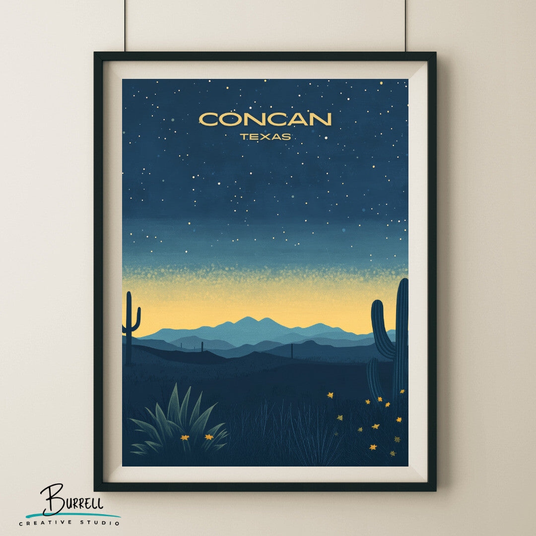 Let the cosmos come alive in your space with our Concan Night Sky View wall art poster. Inspired by the serene beauty of Texas Hill Country, this piece captures the starlit wonder that blankets Concan after the sun sets and the campfires glow.