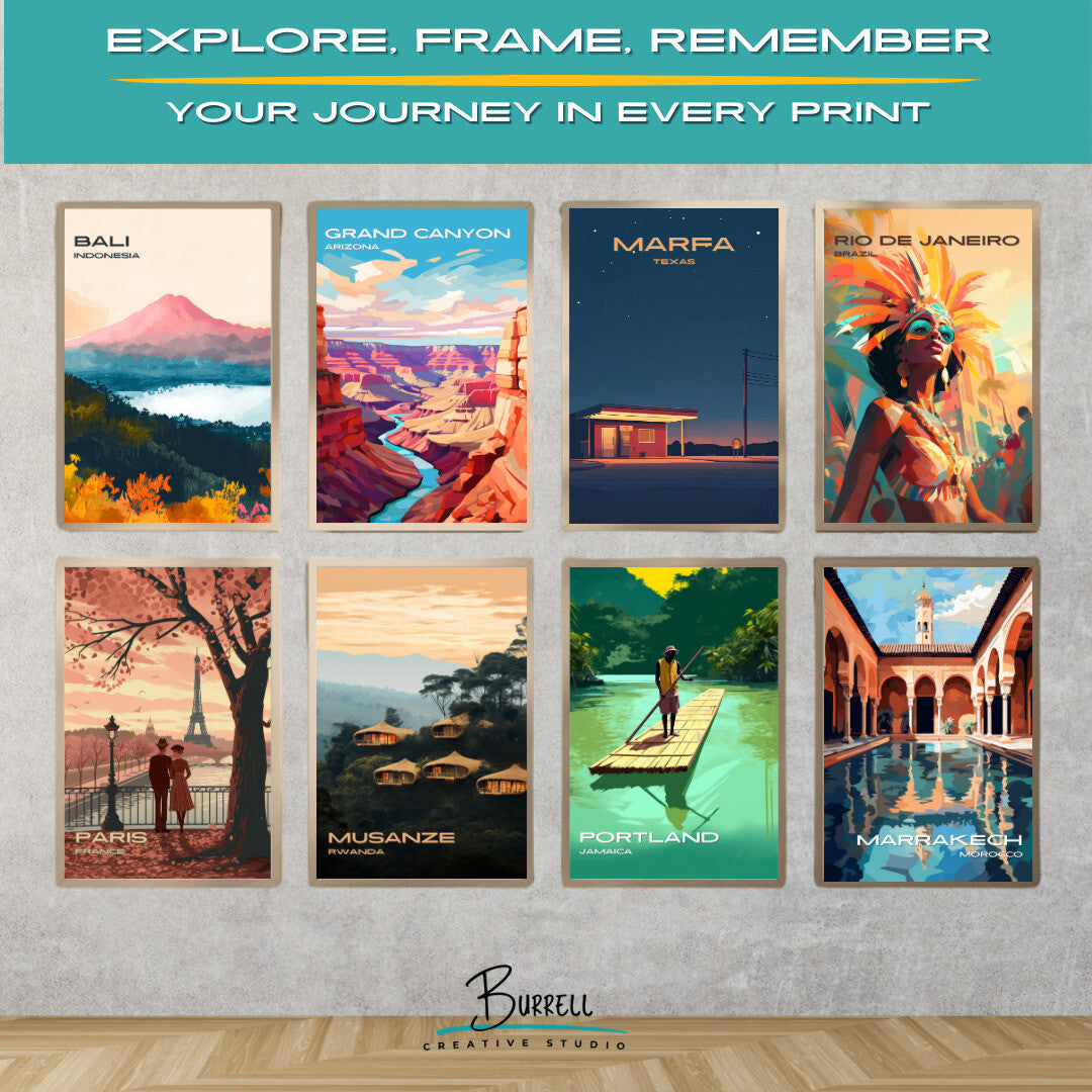Experience the quiet allure of Marfa's Small Town Charm with this captivating wall art poster. Nestled in the vast Texas desert, Marfa is a hidden gem that blends small-town warmth with artistic flair. Known for its rich cultural history and unique mix of desert landscapes, this poster captures the essence of a town where art, nature, and a close-knit community converge.