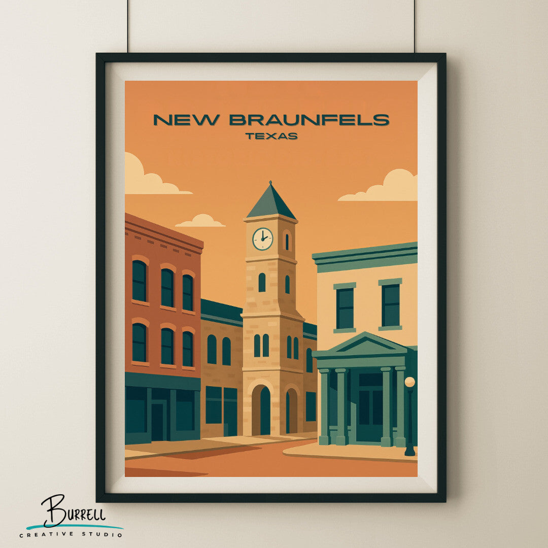 New Braunfels Texas Historic District Travel Poster & Wall Art Poster Print