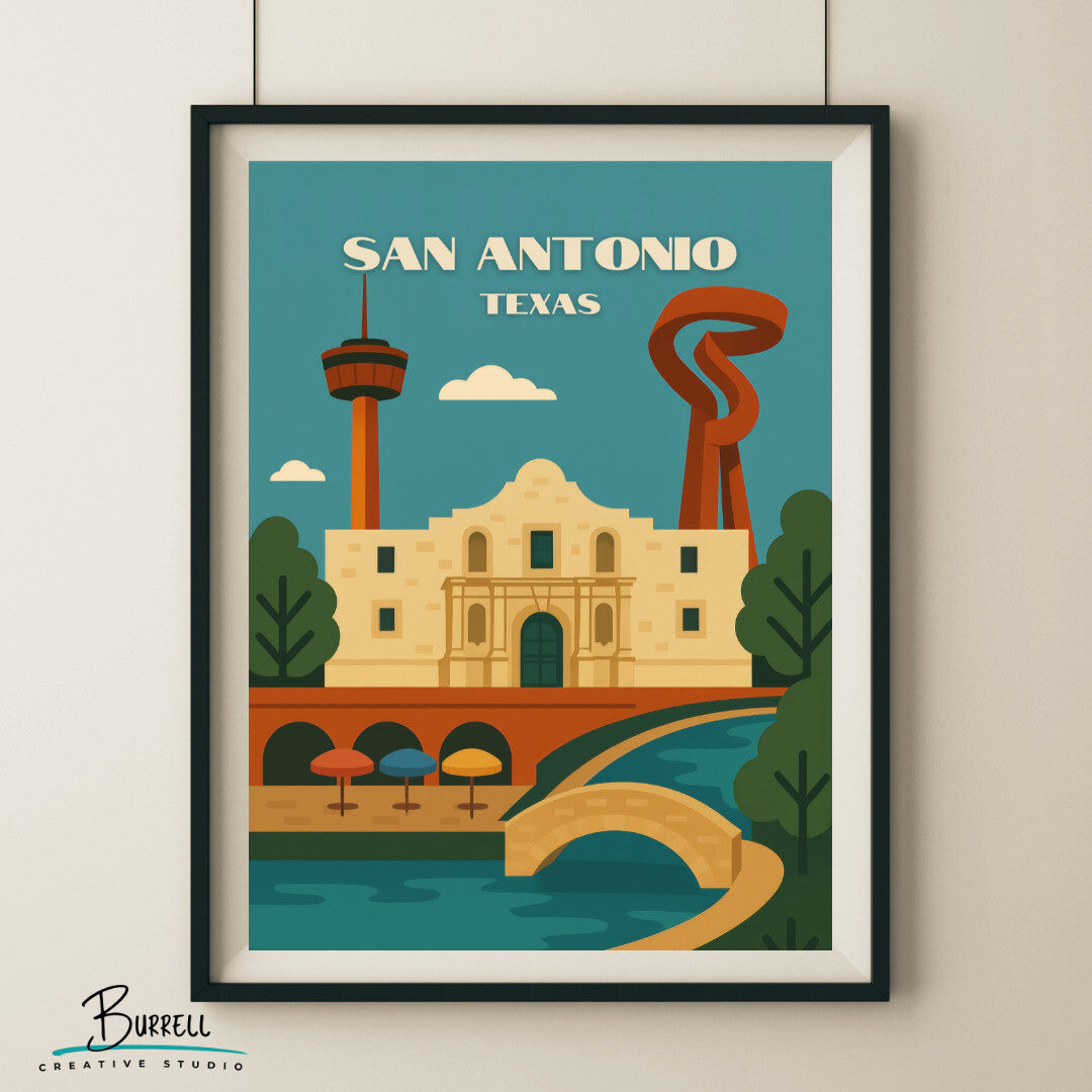 San Antonio Texas Unique Attractions Travel Poster & Wall Art Poster Print