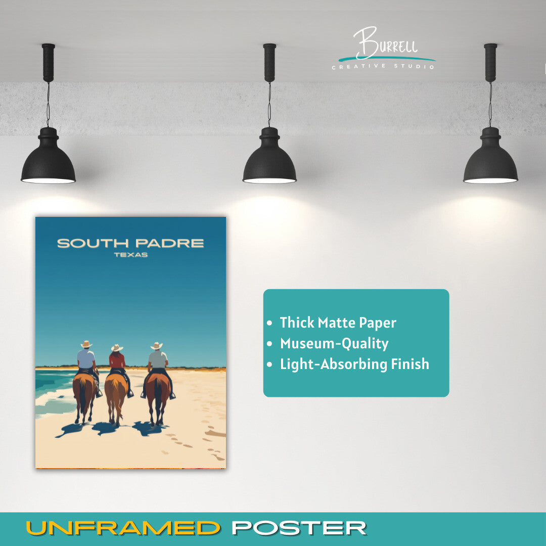 Let this captivating artwork inspire your sense of freedom and adventure, serving as a perfect addition to your living room, office, or beach house. It’s not just a poster—it’s an invitation to ride along the shores of South Padre Island every day!