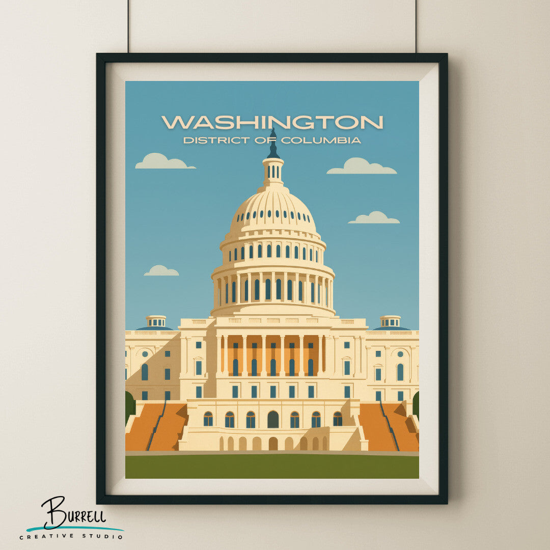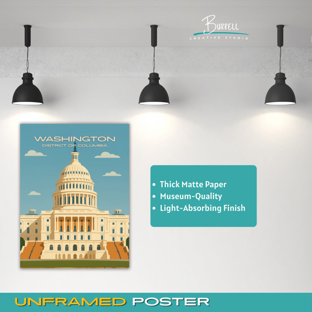 Washington District Of Columbia Capitol Building View Travel Poster & Wall Art Poster Print