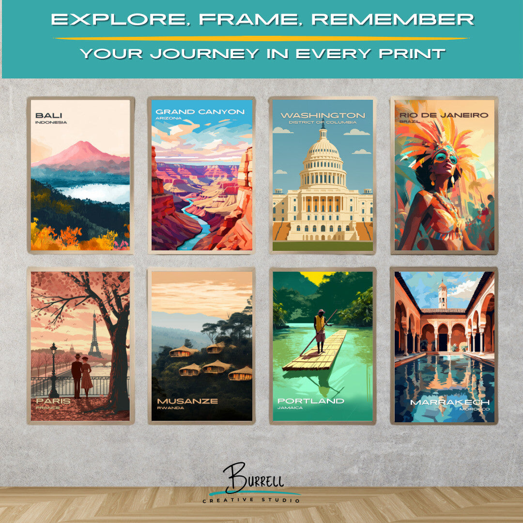 Bathed in natural light and framed by the open sky, the Capitol stands as a symbol of strength, unity, and the enduring spirit of a nation. From its majestic dome to its stately columns, this artwork invites admiration and reflection, making it a powerful statement in any space.