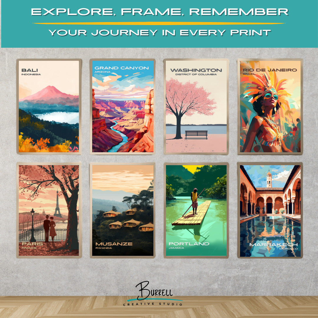 Let this poster transport you to a quiet morning in D.C., where petals drift in the breeze and the city awakens under a blush-colored sky. It’s a gentle reminder of the beauty in transience and the joy of seasonal renewal.