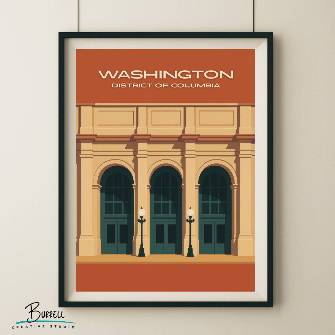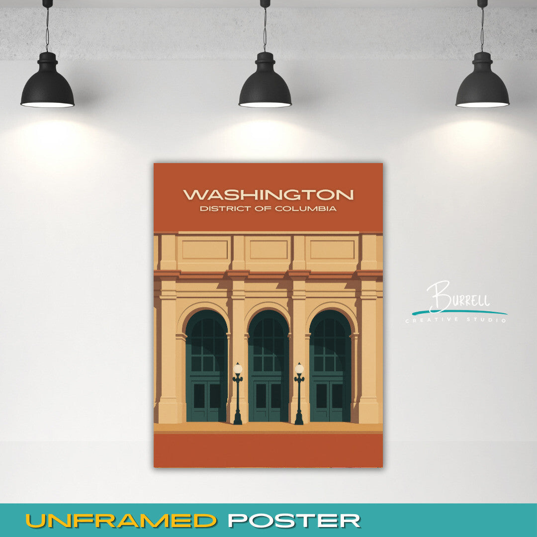 Washington District Of Columbia Union Station Entrance Travel Poster & Wall Art Poster Print