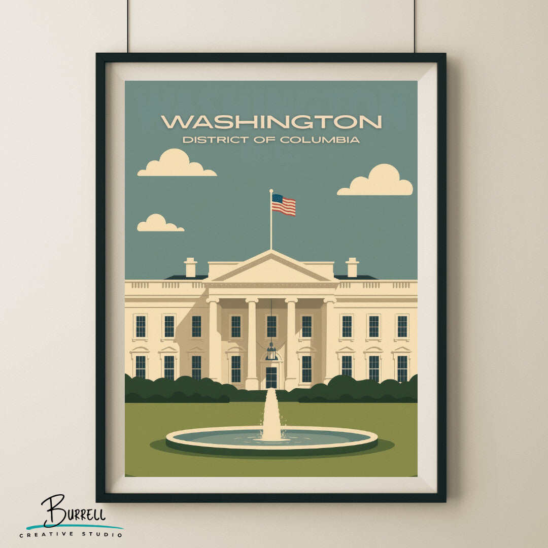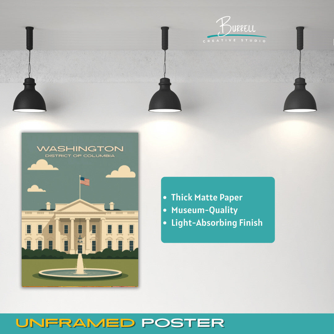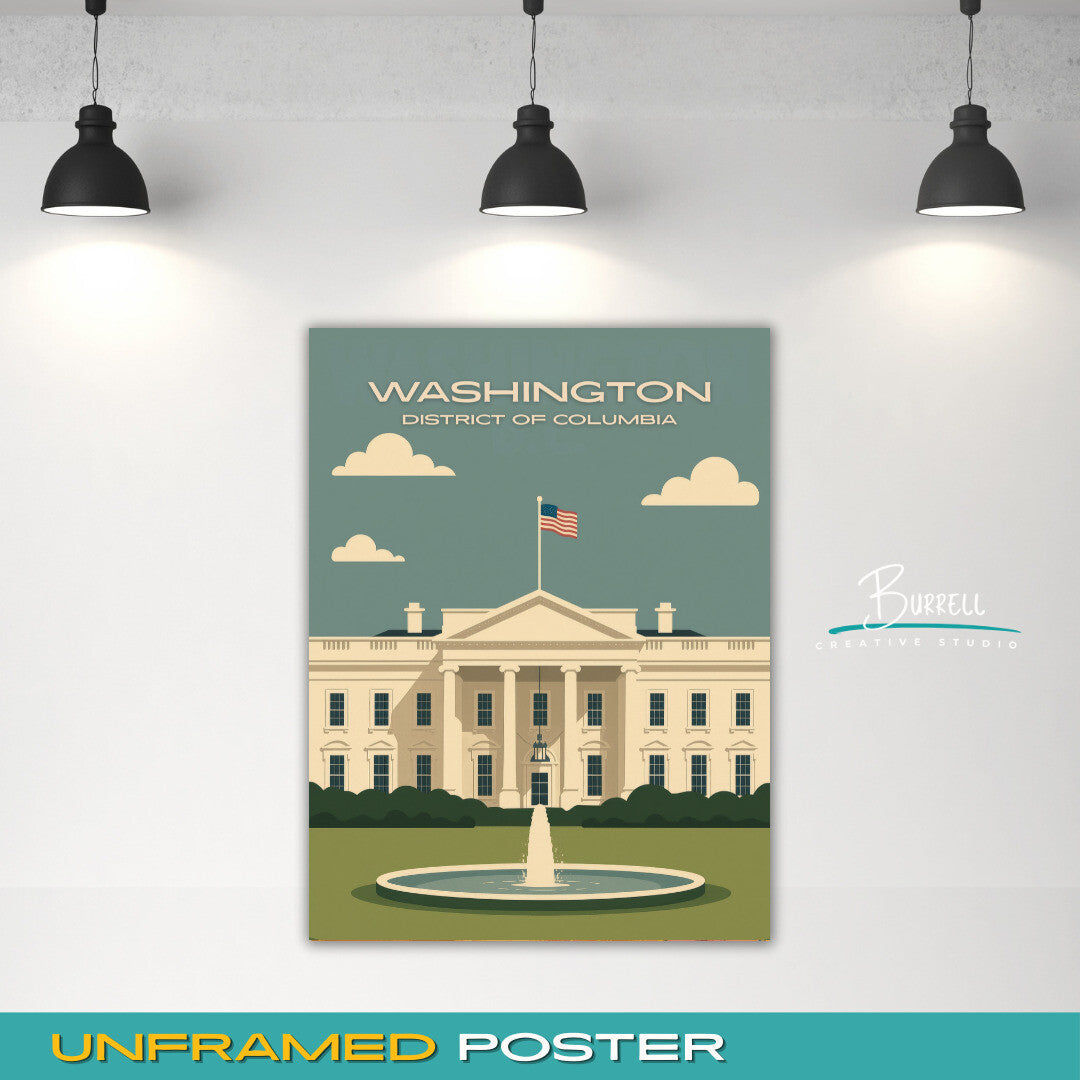 Washington District Of Columbia White House Scenery Travel Poster & Wall Art Poster Print